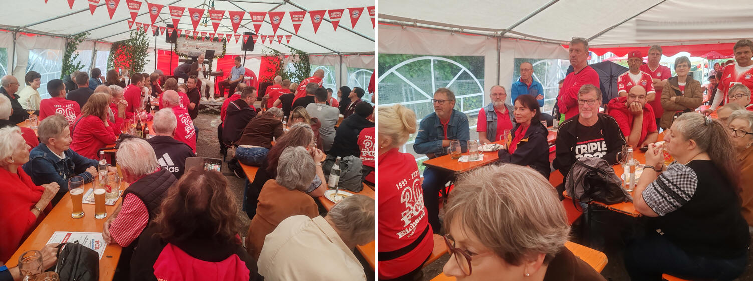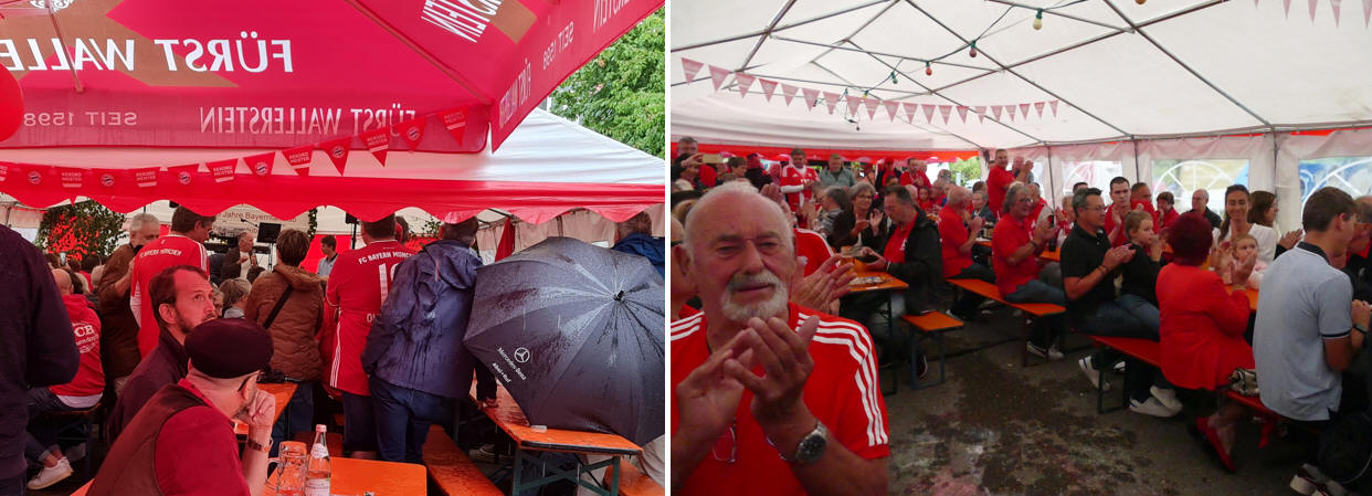 Am vergangenen Wochenende hat der FC Bayern-Fanclub-Eichendorffstüble sein 30-jähriges Bestehen mit einer ganztägigen Feier zelebriert. Da die Wettervorhersagen im Vorfeld nichts Gutes erwarten ließen, hatten die Mitglieder in wei-ser Voraussicht noch kurzfristig ein Festzelt vor der Vereinsgaststätte Eichendorffstüble aufgestellt. Dies sollte sich im Verlauf des Tages noch auszahlen.