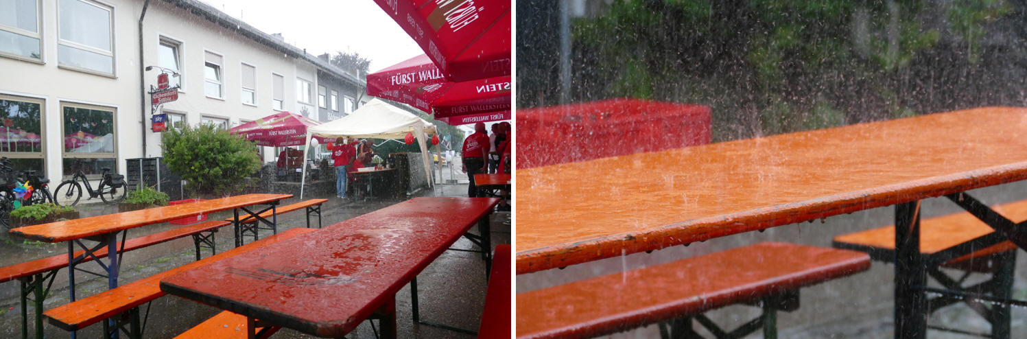 Kaum hatte der Schirmherr den Festplatz verlassen, öffnete der Himmel seine Schleusen und starker Regen ergoss sich stundenlang über das Festgelände. Manch einer der Gäste führte das Unwetter mit einem Augenzwinkern darauf zurück, dass man mit Wittner einen eingefleischten Fan des Revierklubs Schalke 04 zum Schirmherrn des Jubiläums des FCB-Fanclubs gemacht hatte. Allerdings blieben, außer einem Pavillon, der unter der Last der Wassermassen zusam menbrach, größere Schäden aus.