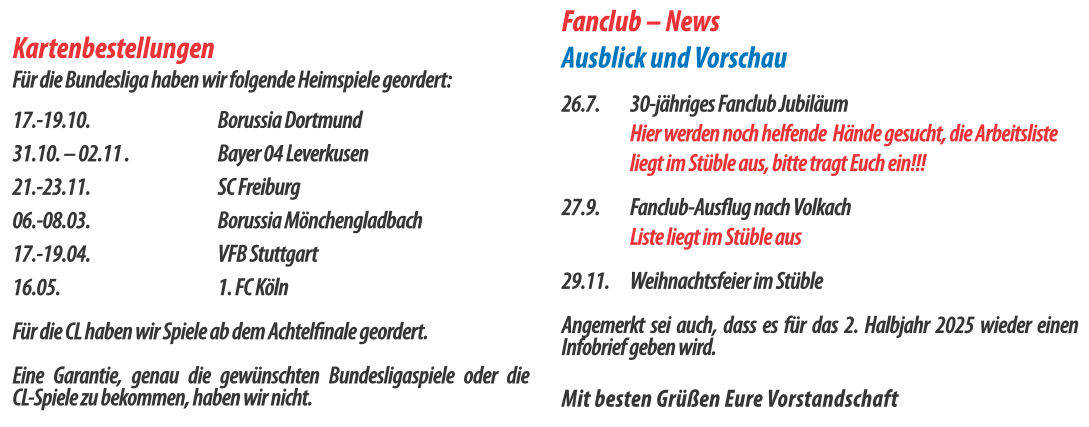 Unsere Termine für das 2 Halbjahr 2025
